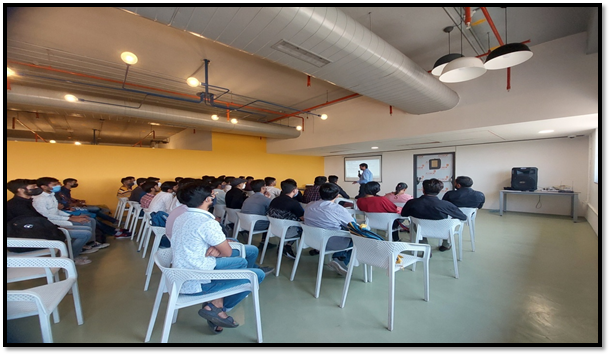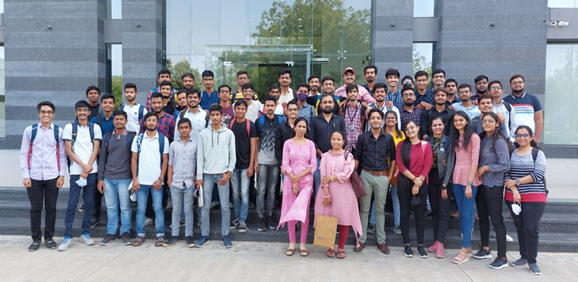 Electronics and Communication Engineering Department organized a one day Industrial Visit at e-Infochips Ltd for 6th Semester (BE) students on 22nd March, 2022. The trip was organized to motivate students for opting career in core technical domain for EC, to help students to gain information regarding complete VLSI Design flow and recent industry trends in VLSI and Embedded systems, to provide exposure to students for different tools and design methodologies adopted by industry and to make them aware of the different career opportunities in the field of VLSI and embedded systems.