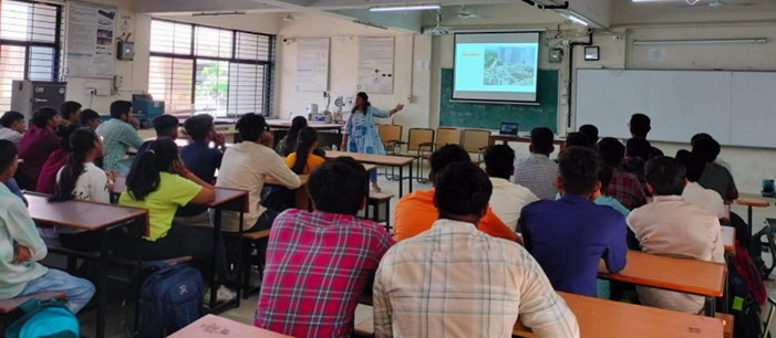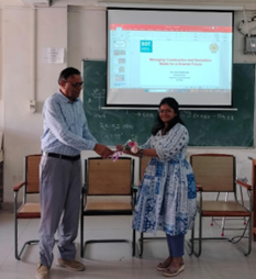 Civil Engineering Department organised an expert lecture for Sem 3 Civil Engineering students on 12th October, 2023. The main objective of this session was to make students understand about how construction and demolition waste can be useful to reduce manufacturing of new materials, promote recycling, restore valuable metals and avoid excessive mining. Moreover, this session enlightened the students with the knowledge of various recycled materials, research area, quality measures and sustainability. At the end of the session, question and answer session was conducted to solve students’ queries. The workshop was concluded with the vote of thanks.