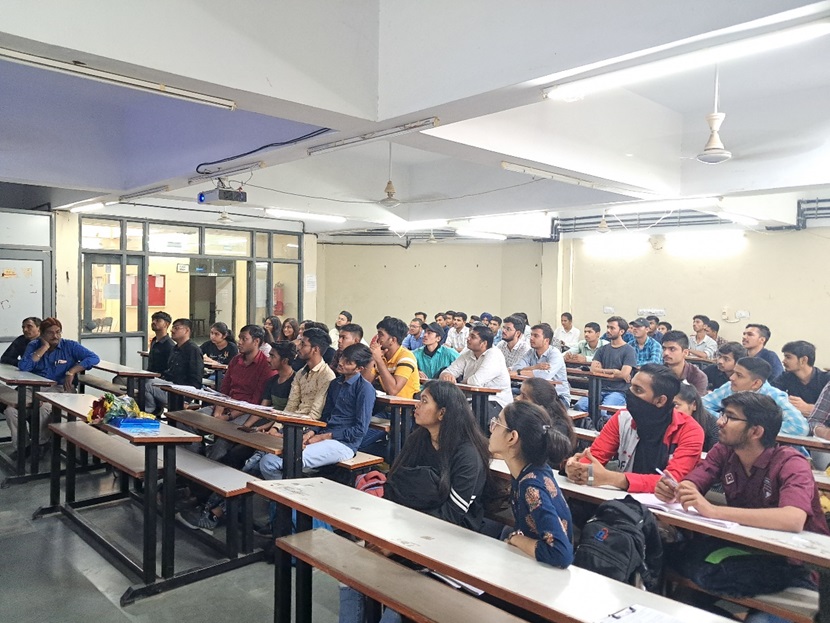 The speaker Ashwin D. Ruparelia managing director Eurotech Power Control and Alumni Rushikesh Bhagat of VGEC Chandkheda discussed about his experience in the industry.