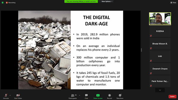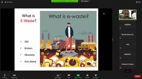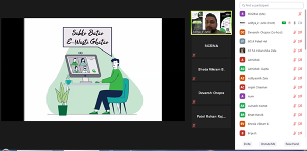 To educate and aware the students about safe treatment of e-waste for environment protection, Electrical Engineering Department of VGEC-Chandkheda organized an expert talk on “E - waste Management” in association with e-Junki on 24/08/2021 from 5:00 PM to 6:00 PM on Zoom (Online Application). The expert talk was addressed by Mr. Aditya Rai who is a Social Entrepreneur and a Digital Marketer and he has Co-founded e-junki in the year 2020. The event was attended by 49 participants including students and faculty members.