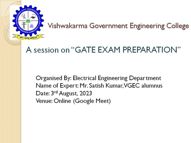 To support students aiming for higher studies and career opportunities through the Graduate Aptitude Test in Engineering (GATE), the department of Electrical Engineering of VGEC organized a special GATE Preparation Session in August 2023. The session was conducted by Mr. Satish Kumar, a renowned GATE mentor and subject expert.