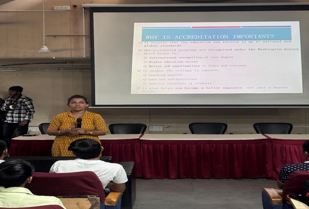 The Civil Engineering Department organised an expert lecture onEmpowering Students for NBA Awareness & Contribution for its students on 23rd July at A-Block(Visvesvaraya Auditorium). The main objective of the expert lecture was to make students explore the importance of NBA Accreditation and how the various procedures work in the preparation of documentations to be presented during the NBA visits. The session also discussed how students can interact during the visits for earning the accreditation. The expert lecture included Q/A sessions for solving every kind of queries. The expert lecture concluded with the vote of thanks to the expert who helped the students to gain this knowledge and an online quiz for the students.