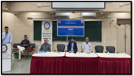 Applied Mechanics Department organised a One-Day Seminar on ‘Current Field Practices in Geotechnical Engineering’ under Indian Geotechnical Society - VGEC Student Chapter for the sixth semester and fourth semester (Civil) students on 12th May, 2023, at Vishveshvariya Auditorium – A block. The main objective of this seminar was to explore the field practises currently utilized in areas of geotechnical engineering.