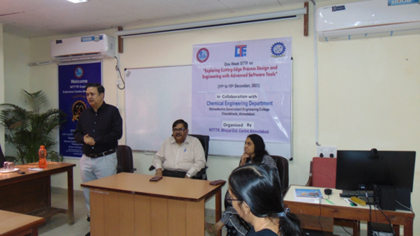 The Chemical Engineering Department of Vishwakarma Government Engineering College (VGEC), in collaboration with NITTTR Bhopal, recently conducted a one-week Short Term Training Programme (STTP) titled "Exploring Cutting-Edge Process Design and Engineering with Advanced Software Tools" from December 11th to 15th, 2023. This program aimed to provide comprehensive insights into the systematic procedures involved in both process and mechanical design of equipment used in chemical and related industries.