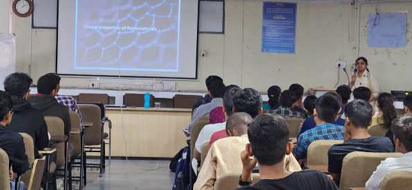 The purpose of hosting an expert lecture on "Scope of Nanoparticles in Chemical Engineering" is to offer our students a broad and forward-thinking educational experience. Nanoparticles have the potential to substantially improve material properties, paving the way for the creation of more efficient and effective processes. By mastering the manipulation and application of nanoparticles, chemical engineers can tailor and refine materials and processes for improved performance and greater sustainability. Exploring the realm of nanoparticles opens up avenues for students to engage with the latest research and innovation, inspiring them to employ their knowledge creatively to solve practical challenges.