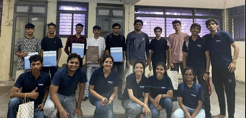 8 Teams with four participants each, participated. The students were initially assembled at A block. Each team was then provided with a clue to a specific block, from the blocks F,C,D,I,J,N,E,G. The orders of the blocks were shuffled, hence each team got a unique route. Every team was accompanied by an IEEE member to ensure a trouble-free and well-coordinated experience. The team that deciphered all clues and got to the IEEE flag first, won.
