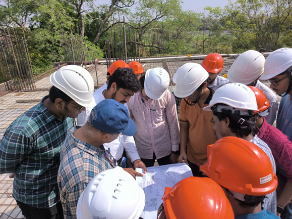 Applied Mechanics Department had organized the Technical Visit for the the sixth semester (B.E Civil) Students on 15th April 2024 at Shyam Elegance- A Residential Building Project near Tapovan Circle Chandkheda. The Main objective of the visit was to explore the knowledge of construction equipment’s, construction activities, and reinforcement Detailing of Structural members at real Field condition. At the end of the visit questions were addressed by the site Engineer, at site.