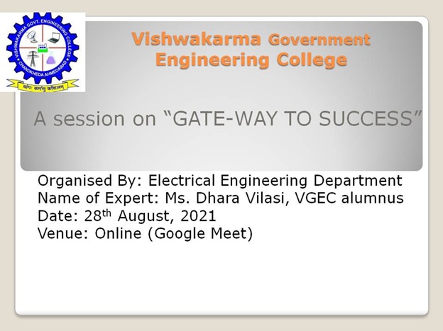 To motivate and guide students aspiring for higher education through the GATE examination, the Training and Placement Cell of VGEC organized a special alumni interaction session on 28th August 2021. The session was conducted by Ms. Dhara Vilasi, an accomplished VGEC alumna and successful GATE qualifier.