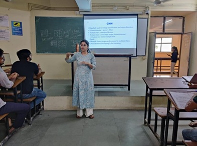 An expert talk on “Practical approach to CNN” was organized by VGEC IT department, on 11th October, 2022 in B-201, VGEC Campus. The Expert of the webinar Prof Rashmi M Bhattad is a faculty in the MMCOE, Pune and specializes in various technologies including Machine Learning and Deep Learning. Around 65 students from 7th & 5th Semester, IT department get benefited from the event.