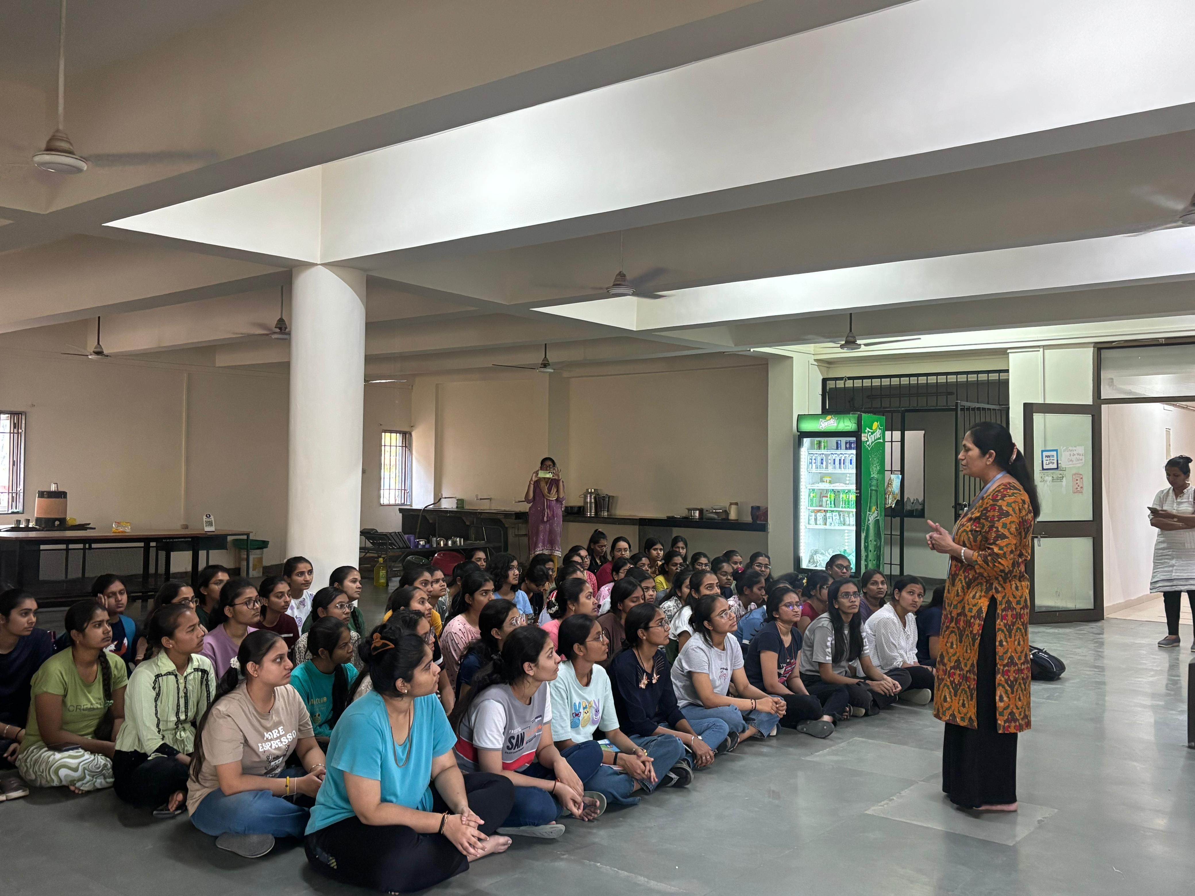 A session on “Female Hygiene” was organized on 20th February, 2025 by Women Development Cell, at Girls Hostel VGEC for VGEC Girls students staying in hostel. The objective of the session was to bring about awareness to girls students about menstruation cycle, selection of sanitary pads and specifications, use and disposal of sanitary pads and information on cervical cancer and its vaccination.