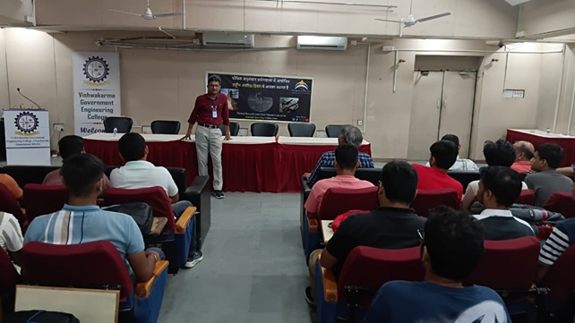 The Science and Humanities Department of Vishwakarma Government Engineering College, Chandkheda, organized an expert talk on Interplanetary Dust Science on 19th August 2025. The talk was delivered by Prof. Jayesh Pabari, a distinguished scientist from the Planetary Sciences Division at the Physical Research Laboratory (PRL), Ahmedabad. The session aimed to provide students and faculty with insights into the fascinating domain of interplanetary dust particles (IDPs), their origins, behavior, and scientific significance.