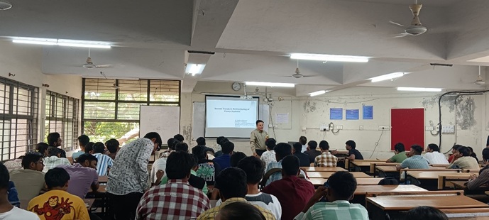 The Electrical Engineering Department of VGEC organized an expert talk on “Recent Trends in Restructuring of Power System” on 20th March 2026. The session was delivered by Dr. Y. B. Bhavsar from GEC-Bharuch. The objective of the session was to provide students with an understanding of the evolving structure of modern power systems and the impact of deregulation and market-oriented reforms. The expert began with an introduction to the traditional vertically integrated power system and explained the need for restructuring due to increasing demand, competition, and efficiency requirements. Key concepts such as deregulation, privatization, and unbundling of generation, transmission, and distribution were discussed in detail. The lecture further covered modern trends including electricity markets, power trading, open access, and the role of regulatory bodies. Emphasis was also given to the integration of renewable energy sources, smart grid technologies, and their influence on restructuring. Real-world examples and case studies were shared to help students understand how restructured power systems operate in practice. The session was highly informative and interactive, enabling students to grasp both theoretical and practical aspects of power system restructuring and its future direction.